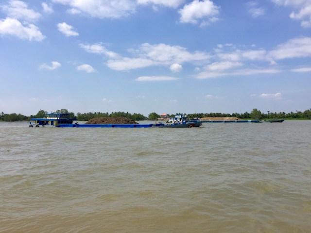 There were some pretty amazing sights along the way back upriver, like these fully laden barges that looked to us like they were sinking.