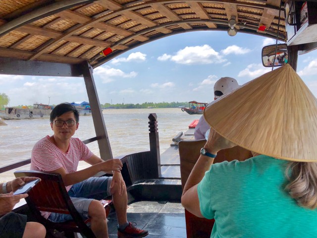 Back to the boat, we then motored down the main channel of the Mekong River to the house of Mr. Six, Loc’s acquaintance, for a traditional lunch, then back to the boat for another ride.