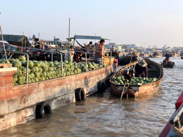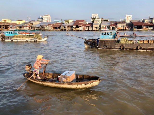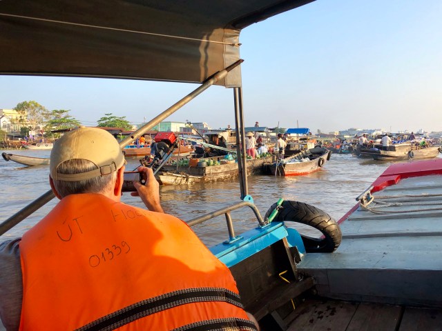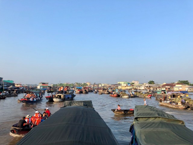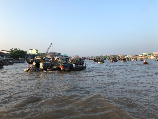 After spending Sunday night in Cantho, we awoke early Monday morning in order to go by water taxi to the biggest floating market in the Mekong delta at Cai Rang on a tributary of the Mekong River.
