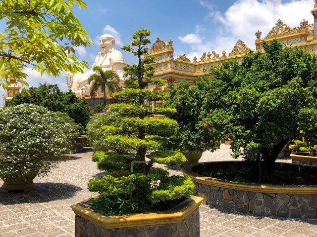A final stop at the Vinh Trang Pagoda with its huge Laughing Buddha.