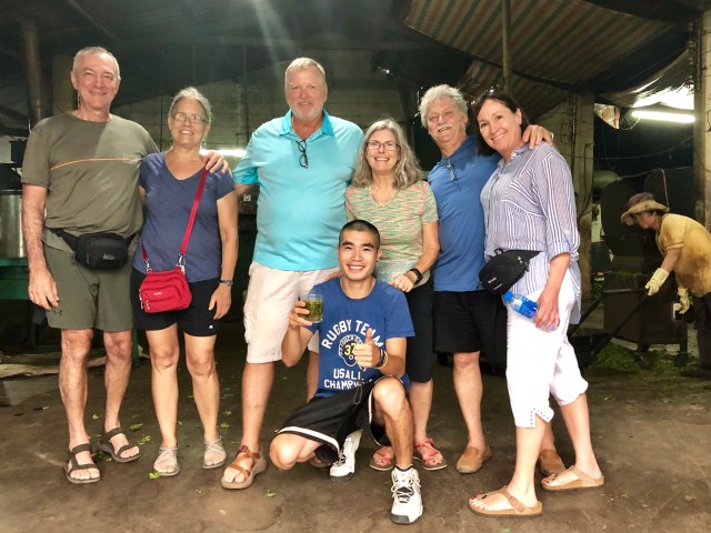 In Bao Loc, we spent the night at a private residence, a “homestay.” In the foreground of the photo below, on the right, are Diem’s parents (Diem works with Loc); I am seated on the left next to Diem’s mother’s cousin who has a keen interest in the U.S.A.