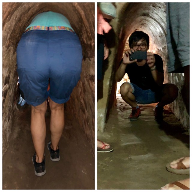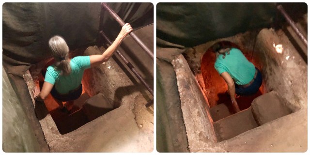 Several of the tunnels are still intact and open to the public, despite massive carpet bombing of the area in 1967. We descended: