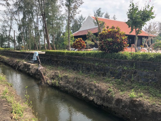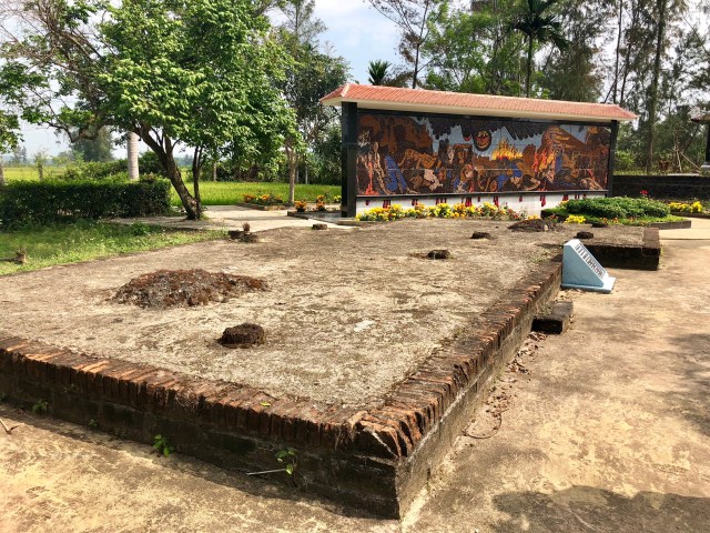 The memorial, below, informed us that in this irrigation ditch, Lt. Calley had brutally murdered 109 villagers, leaving their bodies in heaps in the ditch. The building in the background is a temple in which we were invited to honor the people that were massacred here.