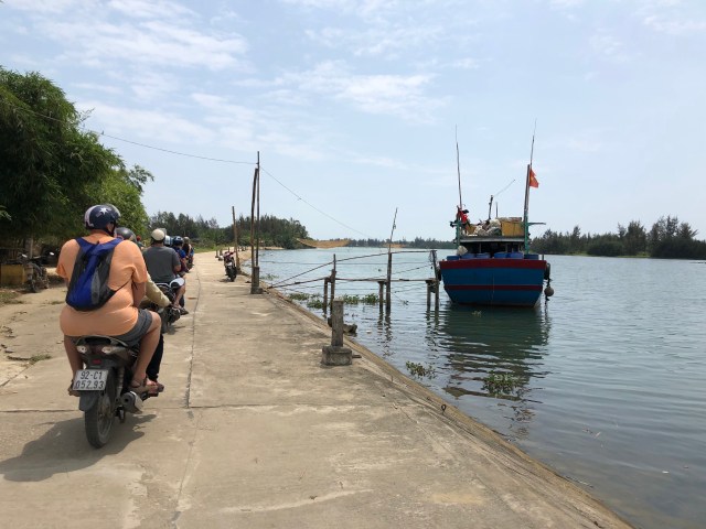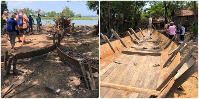 Back on the motorbikes, we zipped along the river, stopping at a local boat builder.