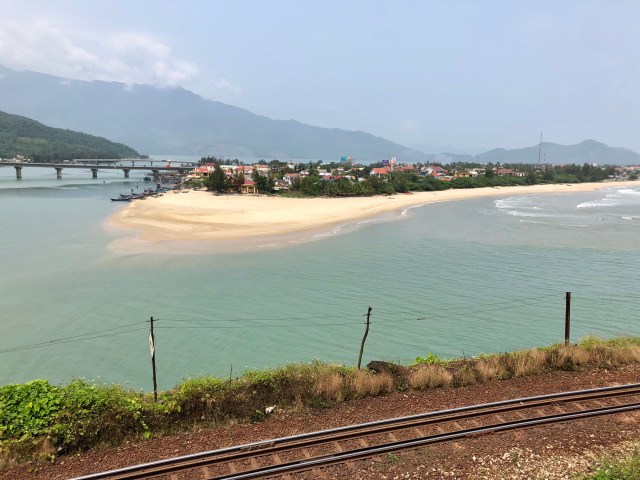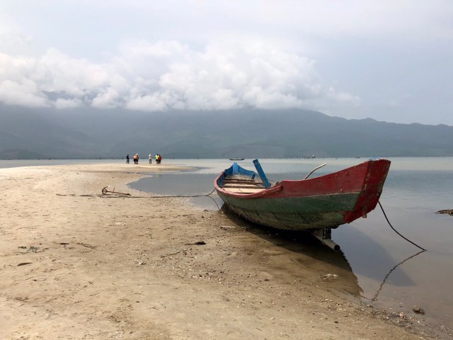 We continued north on the coastal road to Lang Co Lagoon, stopping at a popular tour bus overlook for a view of the peninsula:
