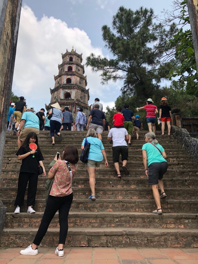 Next stop was the Thien Mu (“Celestial Lady”) Buddhist Pagoda on the other side of town, apparently a popular tourist destination. It was packed.