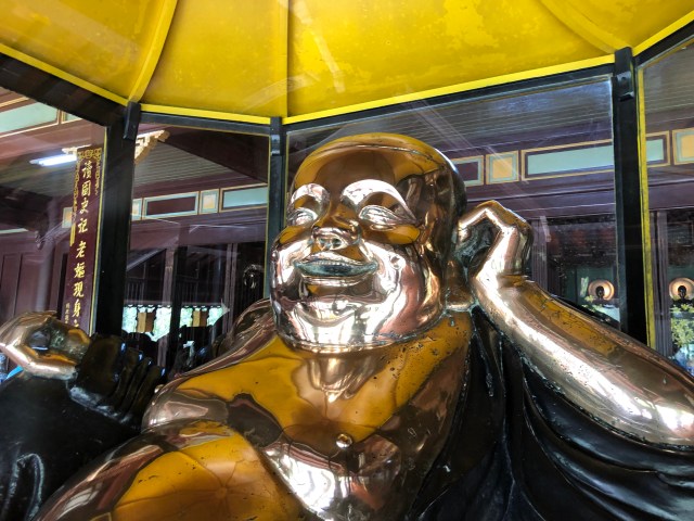 None of us seem to be fond of crowds, so when Loc asked if we’d like to go further into the countryside to another, more remote pagoda, we all said, “yes!” And, so, we arrived at Huyen Khong Son Thuong Pagoda at the end of a long, desolate country road. It was serene and beautiful and we had the place to ourselves.