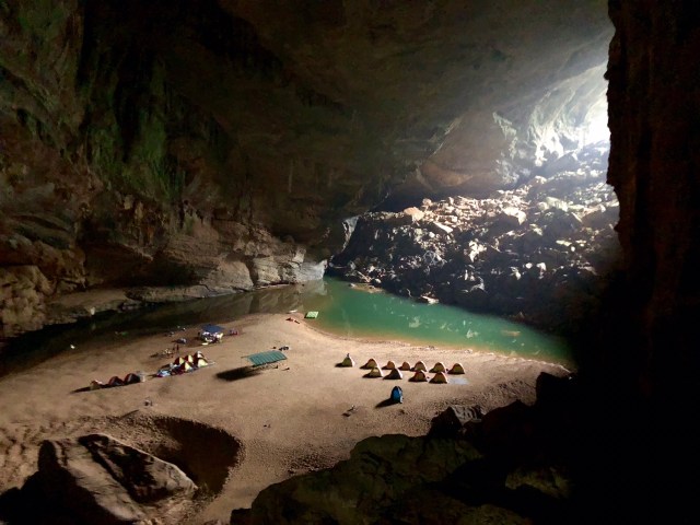 After dropping our gear and washing off with a swim in the underground river that created this cave, we sat down to a Vietnamese dinner prepared by the Oxalis staff, then off to bed early.