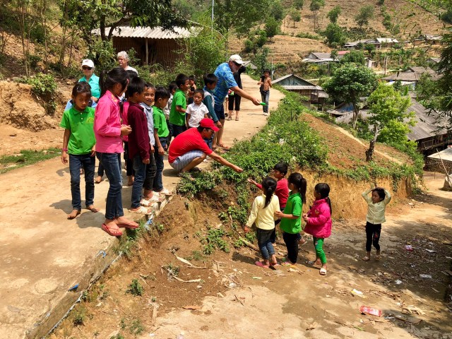 While some of us were watching the teeth blackening, Dale was in the main room of the longhouse teaching the children how to count in english. The little boy to the right of Dale nominated himself to be our guide for a tour of the village.