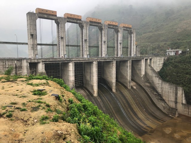 Rounding a curve, we discovered why: hydroelectric dams (notice the water buffalo in the road).