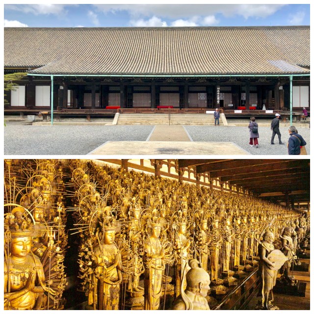 After leaving the Inari Shrine, we visited the Rengeō-in Buddhist temple, commonly known as Sanjusangendo, a short distance to the north. “Sanjūsan-gen-dō” translates to “33-interval-temple” which relates to the building’s architecture of 34 columns, creating 33 intervening spaces.