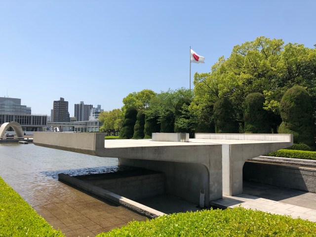 Besides the Dome, the Memorial Park also houses an eternal flame monument, a cenotaph and a museum. The flame is located just below the Japanese flag in the photo below, although it’s hard to see; the cenotaph (which recites the names of all the known victims of the bombing) is shown on the far left.