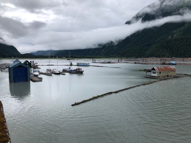 Continuing around the harbor’s northwest side, we came to the southernmost and easternmost settlement in Alaska – Hyder, population 87 in 2010. What? Alaska already?