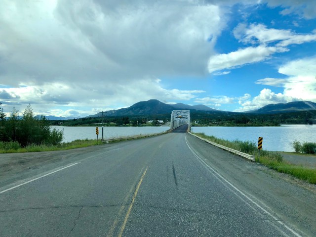 The Yukon is beautiful with deep hues of blue and green. Or maybe it was simply the fact that the sun was shining again. We are on the Alaskan Highway now, Hwy 1, and the road is quite a bit better. Heading west from the junction of the Cassiar and Alaskan Highways, the road dips back into British Columbia for several miles, then returns to the Yukon Territory.