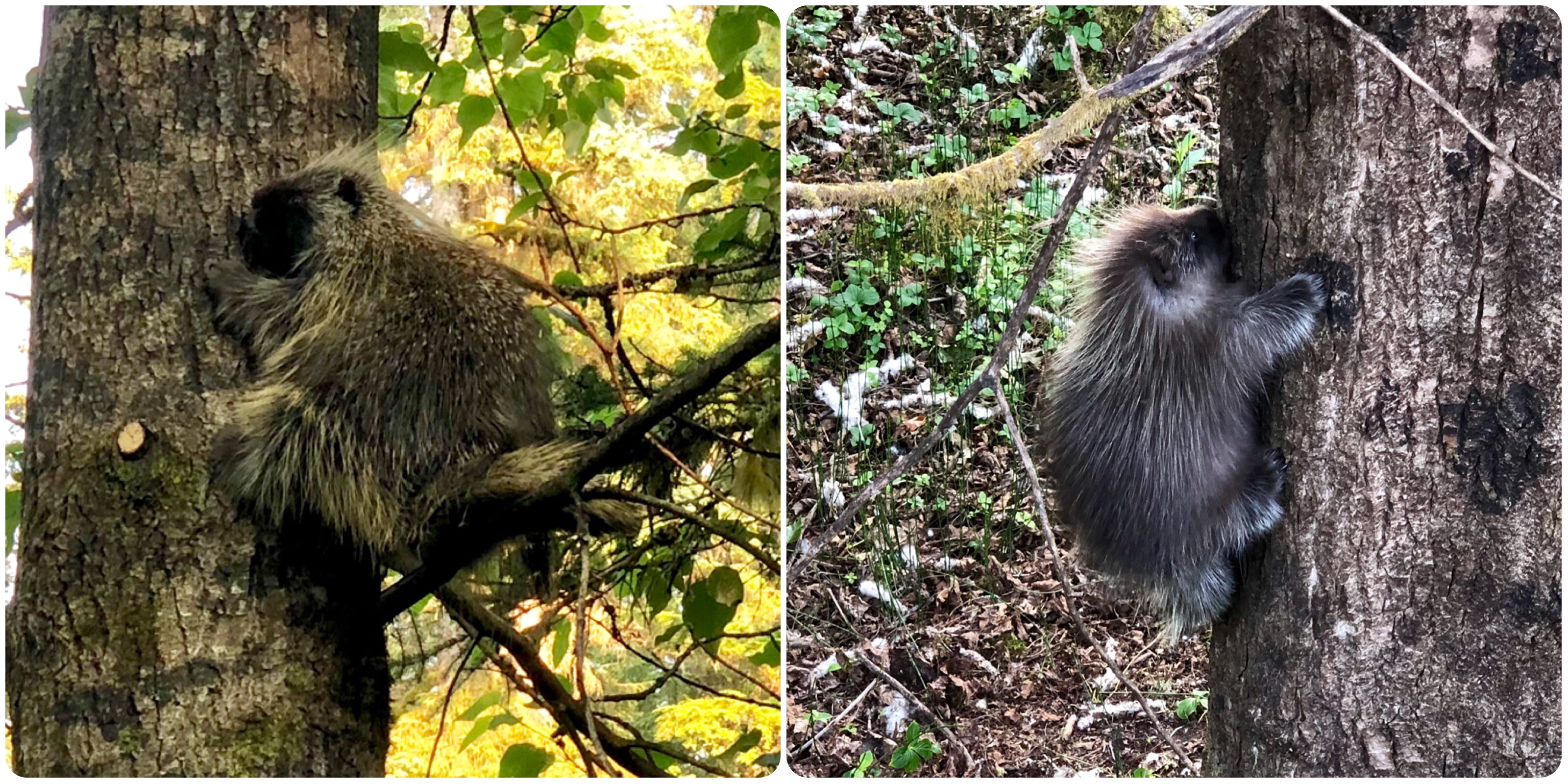 On our way back to the lodge for dinner, an excited young lad ran up to us and pointed out a porcupine and her baby in a cottonwood tree just off the boardwalk. If he hadn’t called our attention to them, we would certainly have missed them.