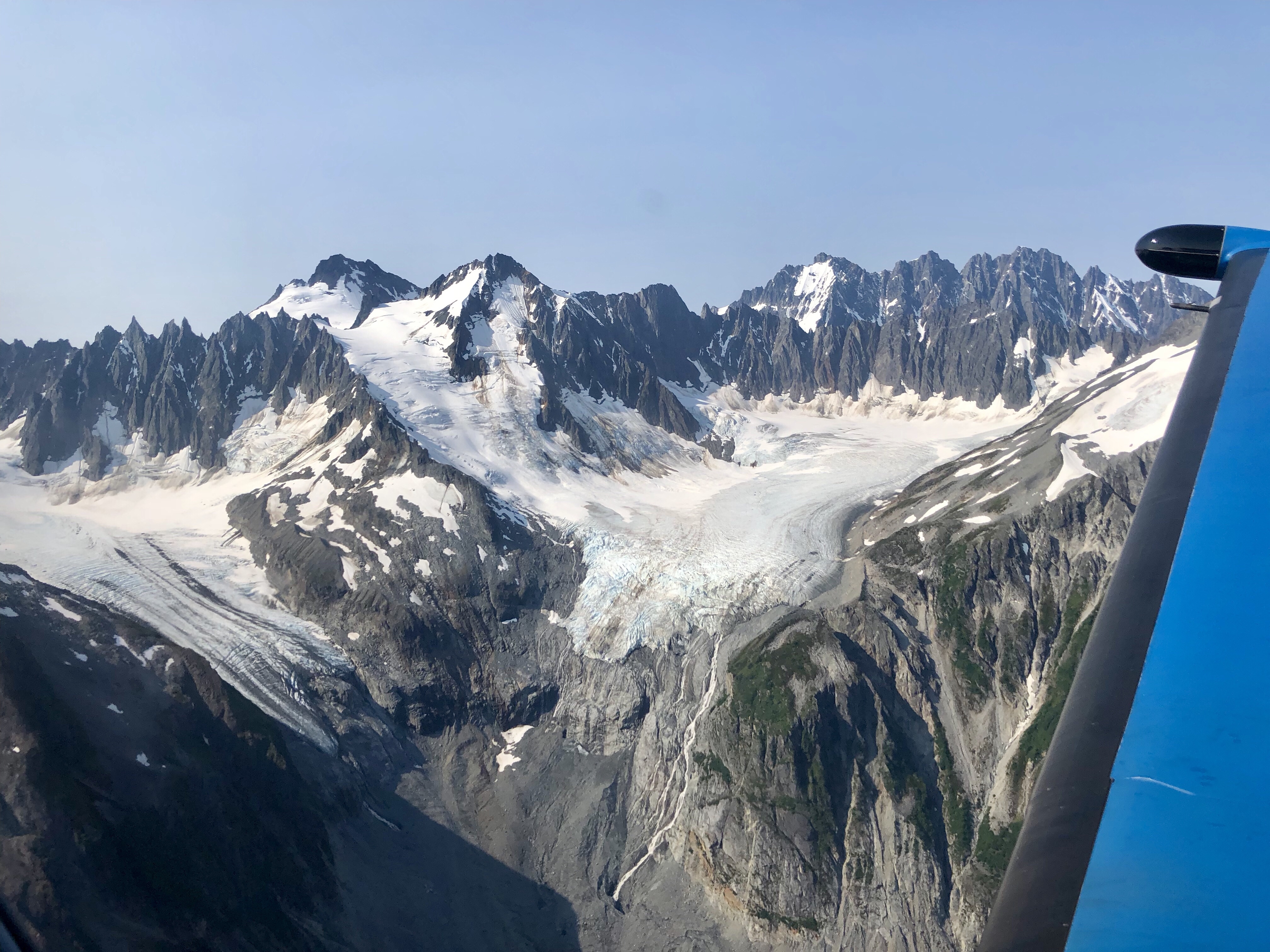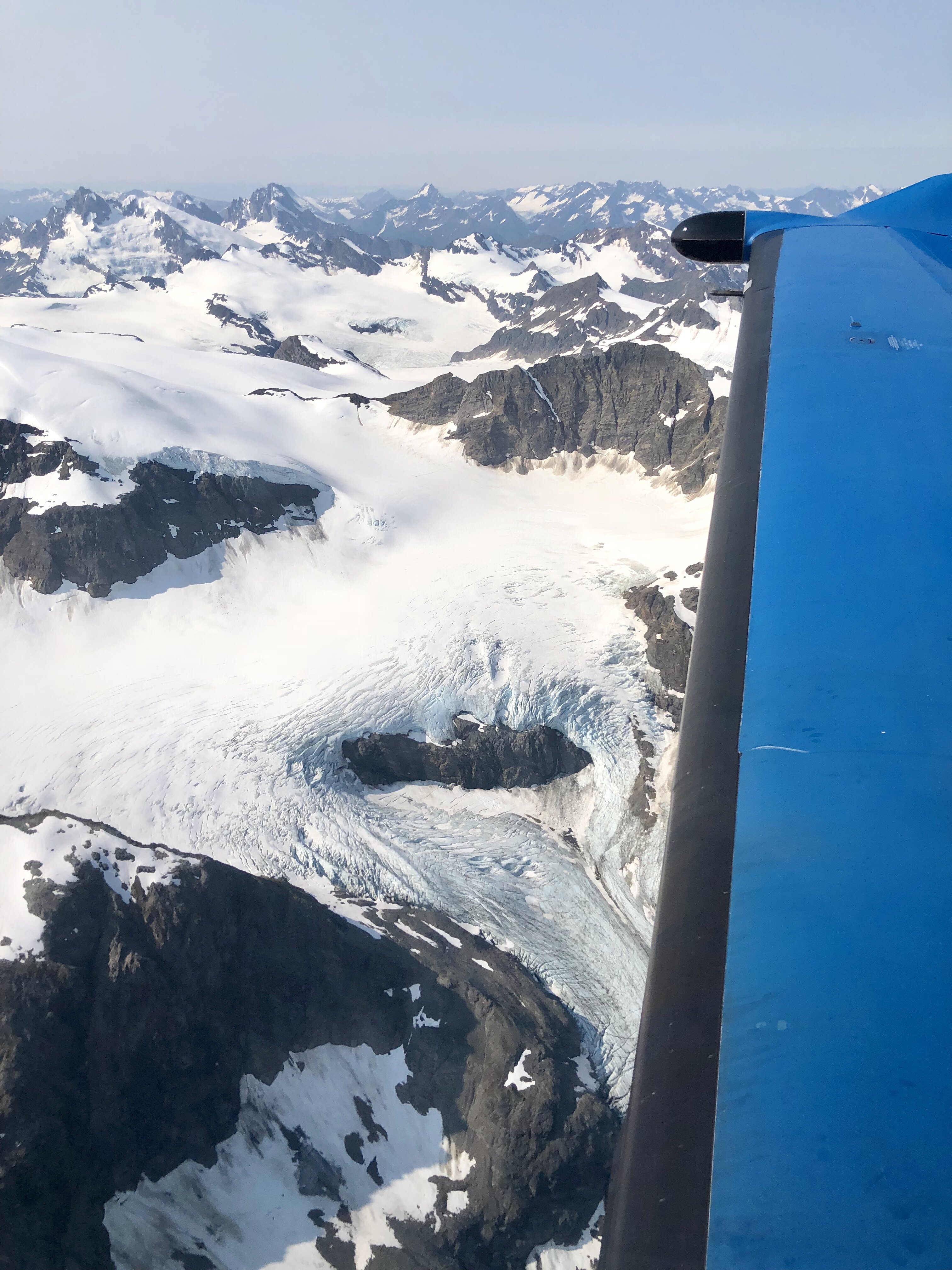 I sat on the right-hand side of the plane, just behind the co-pilot’s empty seat, looking southwest as we passed glacier after glacier.