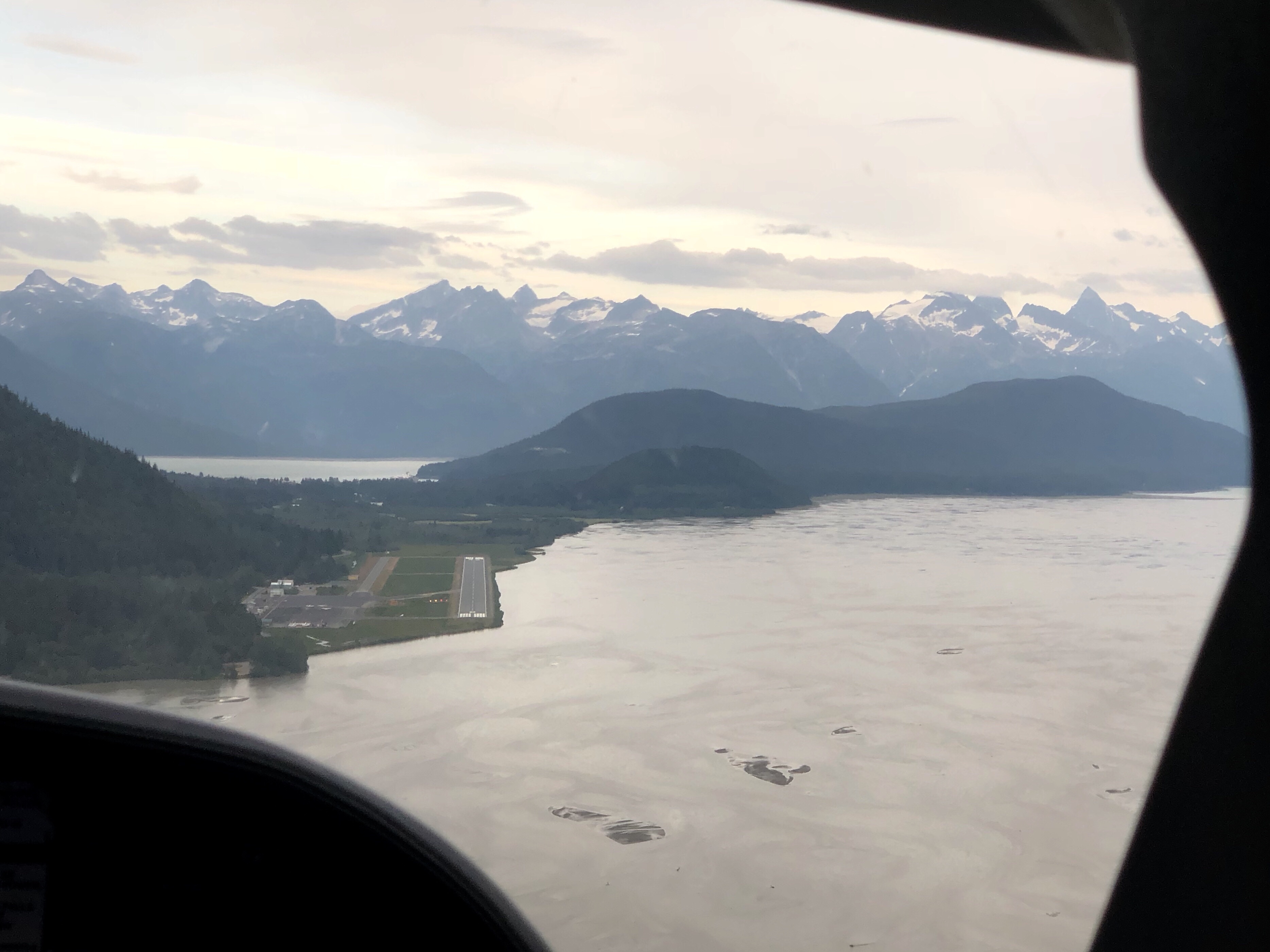 It wasn’t long after flying over this glacier (Lynn Canal in the background)…