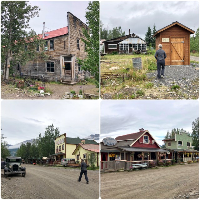Although we will be staying 5 miles up the road from the pedestrian bridge in the mining company town called Kennecott, the town of McCarthy is just a little over half a mile from the bridge. The two towns and the mine developed together in the early 1900s, Kennecott for living quarters and McCarthy, well, for making the work endurable. Back in the day, McCarthy was lined with saloons, restaurants, bordellos, hotels, pool halls and shops, everything a single young miner could ask for. It looks little different today, with the exception of the new outhouse.