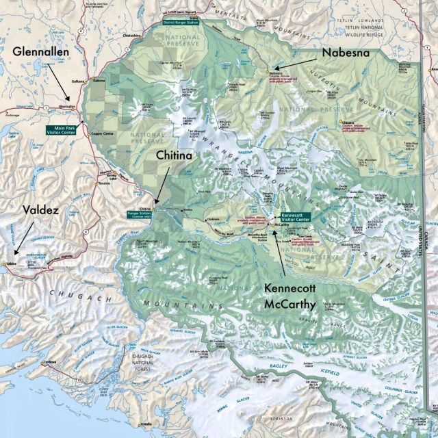 But for the most part, the pavement stops in Chitina at the beginning of the 62-mile McCarthy Road, although 18 miles of the road are now paved. From there on, the McCarthy Road is mostly a graded road all the way to its terminus at the Kennicott River. The McCarthy Road came into existence in the 1960s, some 30 years after the right-of-way of the Copper River & Northwestern Railroad over which it traverses was abandoned in 1938. The CR&NW was a 196-mile standard gauge railroad built between 1906 and 1911 that connected Cordova on Prince William Sound and the Gulf of Alaska with the copper mines and mill being developed simultaneously at that time on Bonanza Ridge, deep in the Wrangell Mountains.