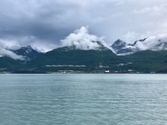 Arriving back at Valdez, we again passed the Valdez Marine Terminal. The fog had mostly burned off and the sea otters had gone, but now we could see the 18 storage tanks on shore, capable of storing a little over 9 million barrels of oil from the North Slope. It’s a secure area, so we weren’t able to visit there, though I would have liked to.