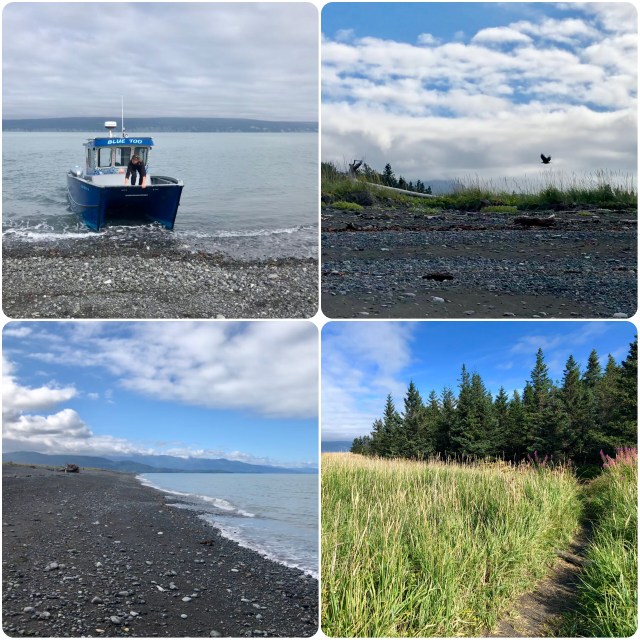 Our captain found a good place to beach her outboard catamaran on Glacier Spit, just beyond a bend that muted the growing swell now being blown into the bay from the Gulf, the beginning of the “Day Breeze” that often picks up to 15-20 knots this time of year.