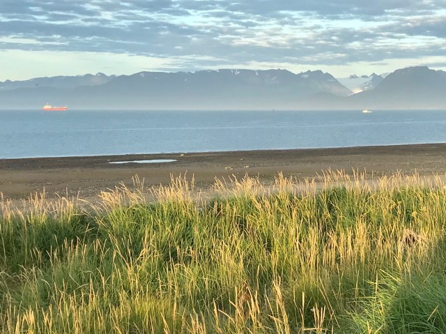 Exhausted from a long day, we had a light dinner and relaxed. As I looked out the front window of the RV, I realized that the white valley I could see across the bay was Grewingk Glacier. So near, and yet, so far away.