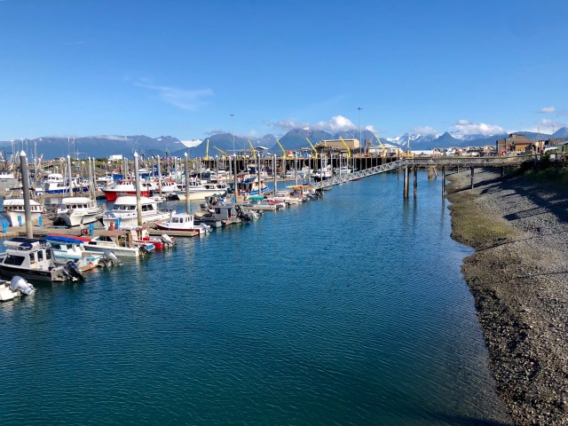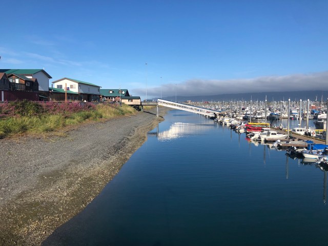 As hoped, the weather improved for our day of hiking in Kachemak Bay State Park, calm, clear and sunny. We stuffed our day-packs and drove down to the marina at the end of the Spit to catch Mako’s Water Taxi for the 1/2 hour ride across Kachemak Bay to the park, departure, 11:00 a.m.