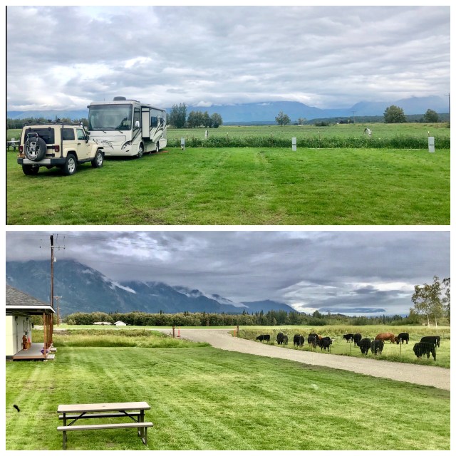 Although I neglected to confirm it with our campground hosts, I read in the tourism brochure published by the Palmer Museum and Visitor Center that the farm surrounding and including the Paradise Alaska RV Park we’ve been staying at is still in the ownership of the descendants of one of those original colonists as a working dairy farm.
