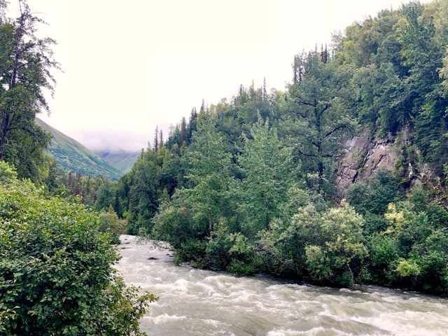 We drove the Palmer-Fishhook Road, which climbs uphill alongside the Little Susitna River, on our way to see the remains of the largest and most productive gold mine of the Willow Creek Mining District, the Independence Mine, now a State Historical Park.