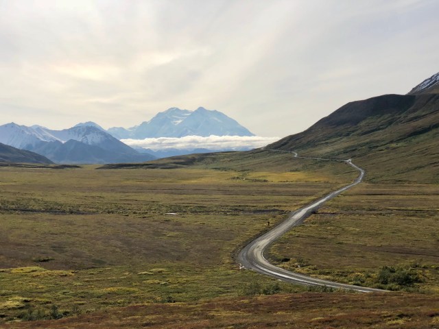 Here’s the view of Denali from Stony Hill Overlook at mile 62 – Denali is still 24 miles away. Although we were 4 miles closer to the mountain when we reached Eielson Visitor Center at mile 66, this was the better view.
