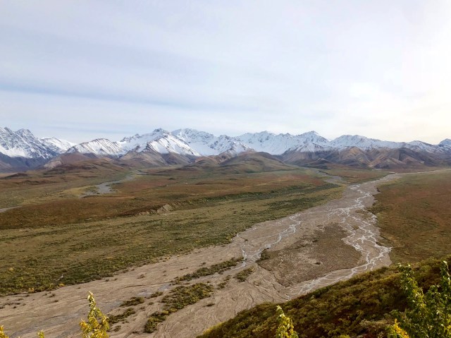 Our bus only stayed at Eielson for a half hour, not enough time to hike very far from the Visitor Center. The drive back around Polychrome Pass wasn’t any less sweat-inducing than going the other way: