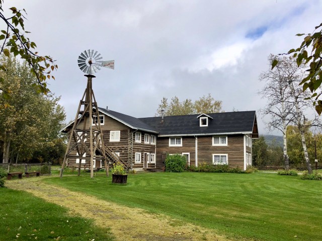 In those days, there were roadhouses about every 15 to 20 miles along the road for travelers to stop for a meal or for the night, the forerunners of the motels that still line America’s highways. On the south side of the Tanana River, a former trading post and roadhouse was acquired by Rika Wallen, a Swedish immigrant, who opened it to passing travelers as Rika’s Roadhouse in the 1920s (photo, below). Rika operated her roadhouse until the 1940s when the Alaska Highway was completed 12 miles to the south at Delta Junction and a bridge was built here over the Tanana River, eliminating the ferry and diverting traffic from the roadhouse and landing. Rika’s Roadhouse is now listed on the National Register of Historic Places and open to the public as the feature of the Big Delta State Historical Park. We stopped and had lunch.