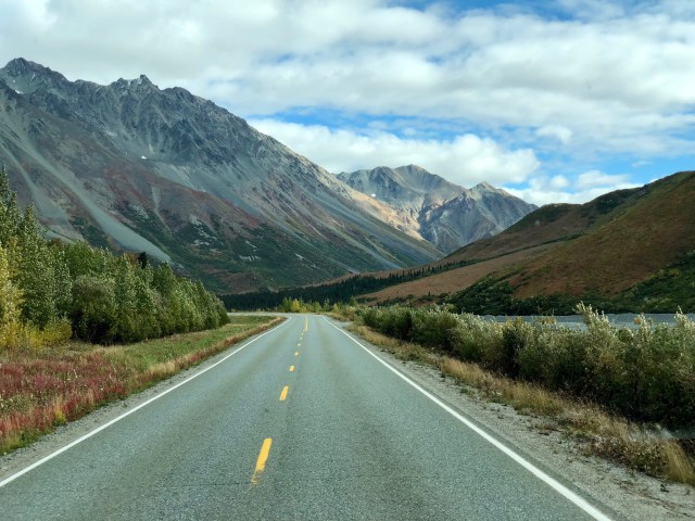Continuing south on the Richardson Highway, we took the righthand fork at Delta Junction, the road designated AK-4 from here to its terminus at far-away Valdez. From Fairbanks the Richardson Highway had been labeled AK-2, the number assigned to the Alaska Highway at Delta Junction where it begins its journey south.
