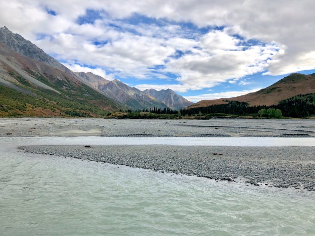 Like most of the rivers we have seen in Alaska, the Delta River runs very wide and shallow in many locations formed by glacial progress and retreat over the eons.