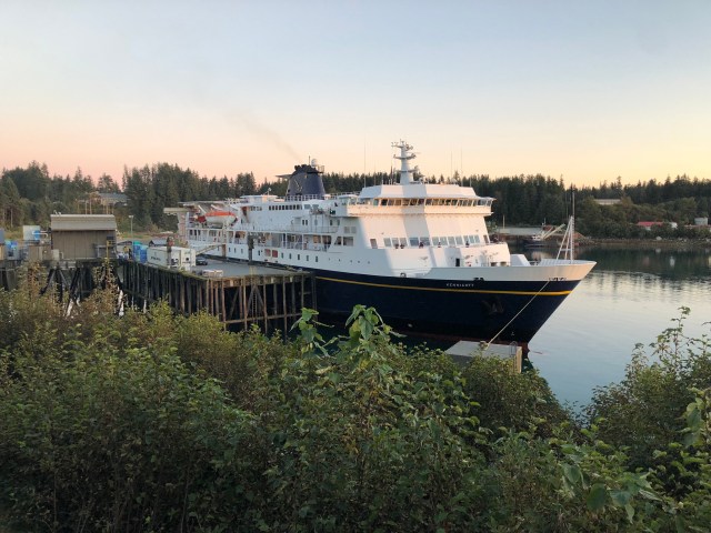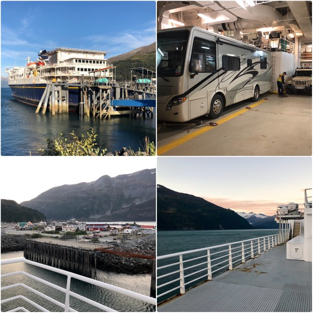We had booked passage on the M/V Kennicott, the newest ship in the State of Alaska’s fleet, launched in 1998. Because we are ticketed all the way to our hometown of Bellingham, Washington, the southern terminus of the Alaska Highway, we were loaded at the back of the boat.