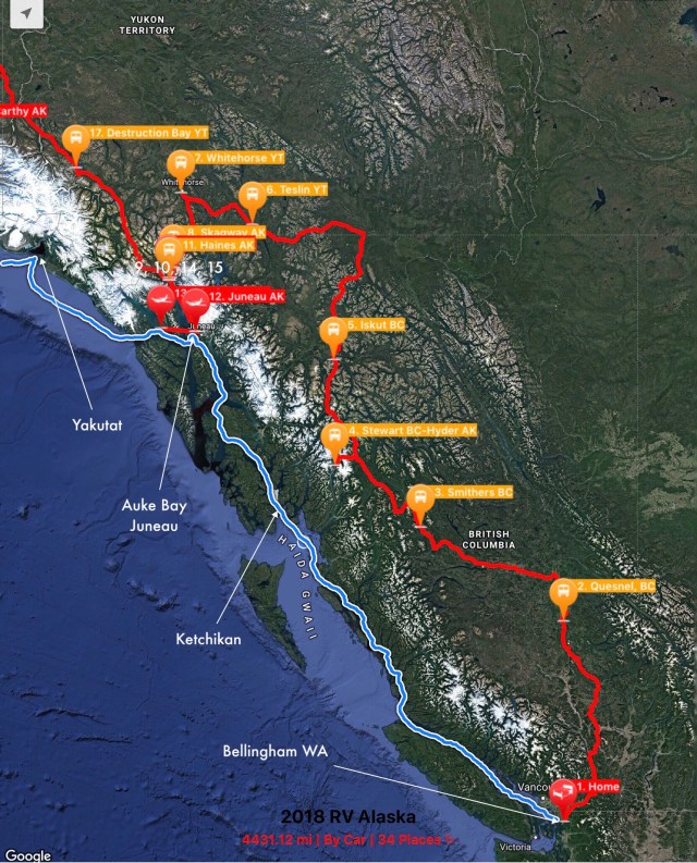 … then, turning to the right, another of Bartlett Cove and Lester Island where we had kayaked and had our encounter with a sea lion when we visited Glacier Bay NP six weeks ago.