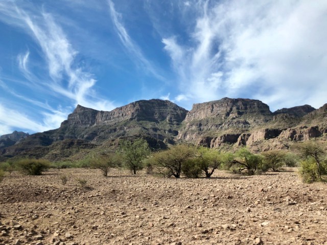 Once into the Sierra de la Giganta mountain range that runs parallel to the coastline, it became a somewhat hair-raising drive, the road being only moderately improved, but the scenery spectacular.