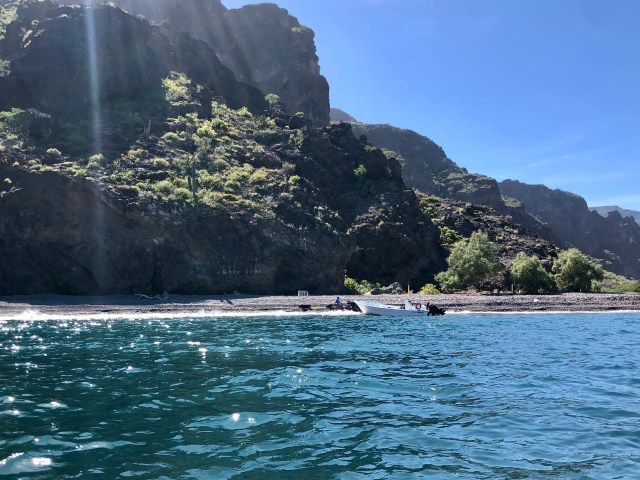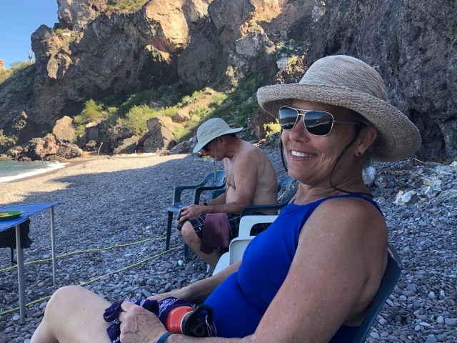 In the afternoon, we all went snorkeling. The water temperature in the Sea of Cortez this time of year is around 75° F. Raised in the cooler waters of the Pacific, Barb and Scott stayed in the water longer than Dale and I could manage. We grew up diving in the more tepid waters of Florida, influenced by the Gulf of Mexico, where any water temperature below 80° F gives us the chills.