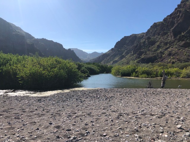 But it turned out not to be an estuary. The body of water trapped in the valley here has no outlet to the sea and is, consequently, a stagnant and pungent breeding ground for mosquitos that soon descended on us.