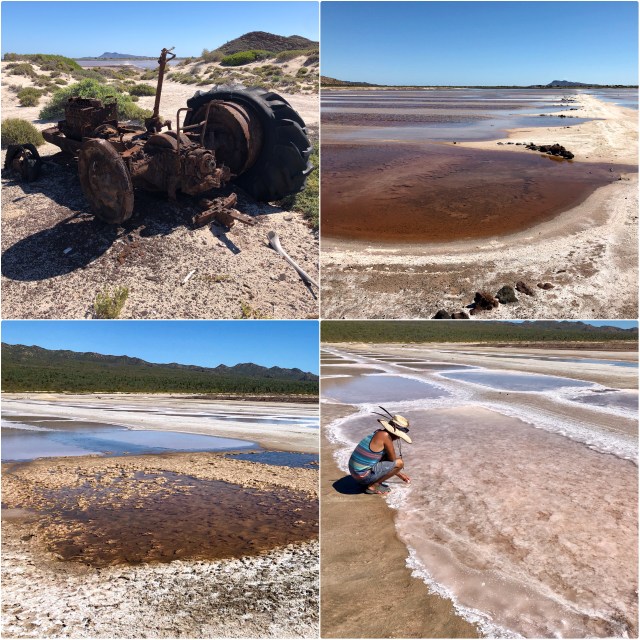 Refreshed, we motored back north for lunch on shore near Punta San Isidro, opposite the village of San Evaristo on the peninsula, then walked east along the beach to the salt ponds.