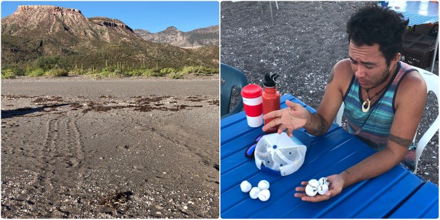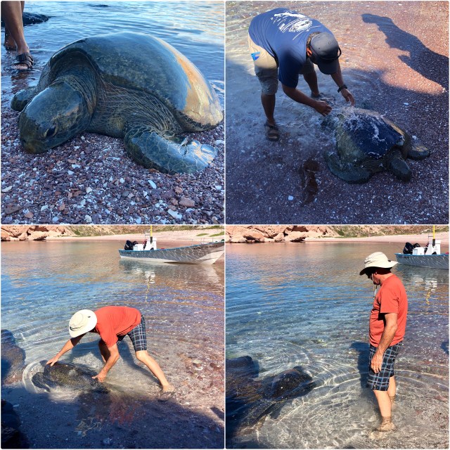 We headed to shore, beaching on the south side of Isla San Francisco to release our turtle friend back into the wild. I could tell from the expression on his face that Mario was not comfortable with the whole situation. We were, after all, in a protected reserve and there could be rules restricting human contact or “interference” with wildlife, although none of us were aware of any. In the end, we all decided that erring on the side of concern for the turtle had been the better course and gently passed our lethargic friend from panga to shore.