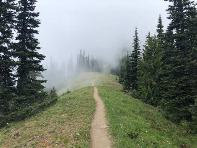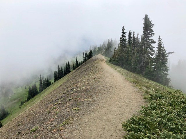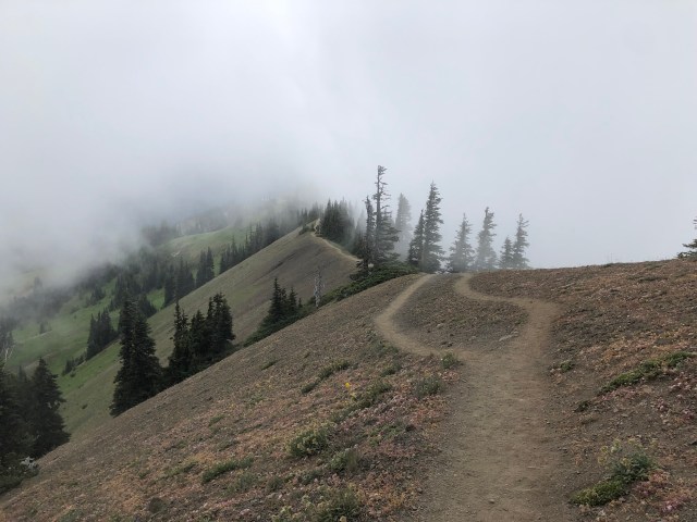After a slight detour up to a rocky overlook, we started off toward Mount Angeles, eyeing the wandering trail ahead of us meandering up to the beginning of the ridge.