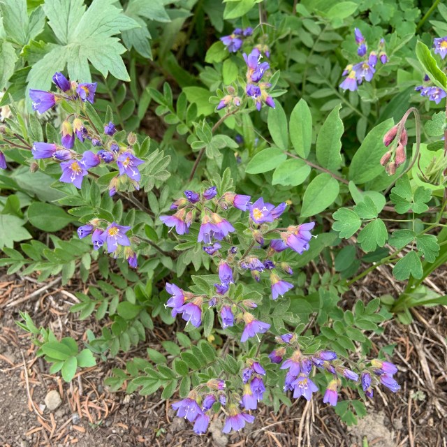 Dale tells me that we walked through (clockwise from top left): 1) Olympic Larkspur; 2) Bleeding Hearts; 3) Wooly Sunflower; 4) Avalanche Lily; 5) Jacob’s Ladder; 6) Mountain Sandwort; and, 7) Hook Violet – neither of us could identify my favorite (8).