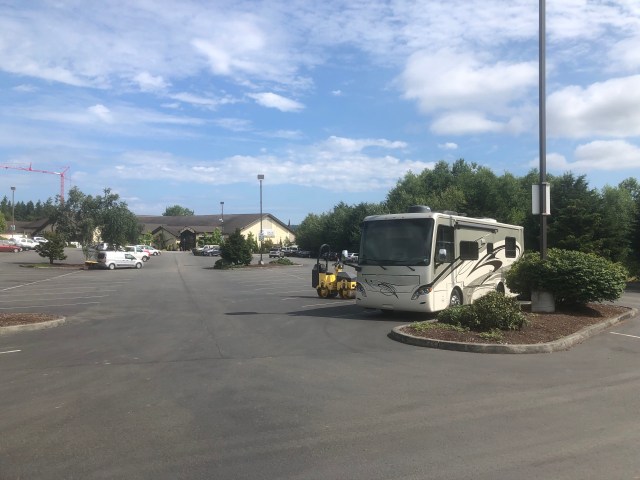 7 Cedars Casino, owned and operated by the Jamestown S’Klallam Tribe, is just outside of Sequim at the southern end of Sequim Bay. The Tribe allows RVers to camp along the perimeter of the casino’s parking lot, even making provision for free electric if you arrive early enough to grab a location with an outlet (which we did).