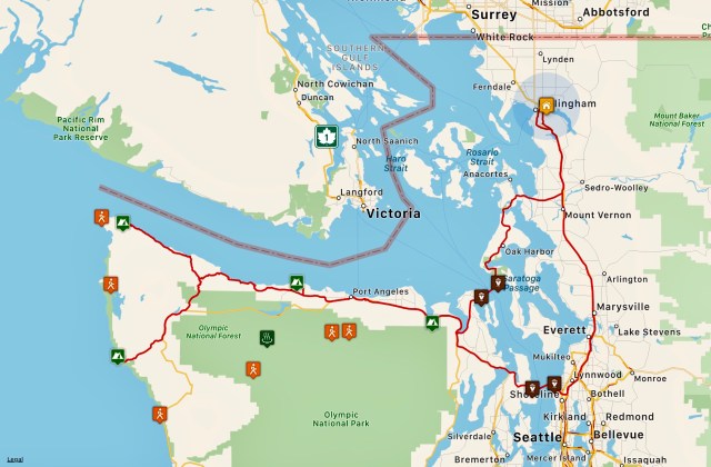 So, we decided to cut the trip short and headed back to Bellingham by way of the Kingston-Edmonds ferry, saving the eastern and southern sides of the Peninsula for another trip later in the year. We finished our morning coffee and headed home. We were back in Bellingham 3 hours later.