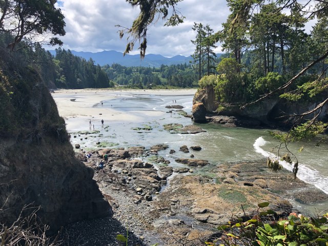 The outflow of Salt Creek, shown below, separates Crescent Beach & RV Park’s private beach from the public beach at the Rec Area: