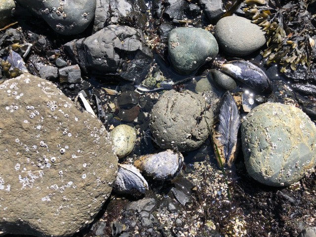 We walked out on the Point around mid-tide. Most of these rocks will be submerged once the tide rolls back in.