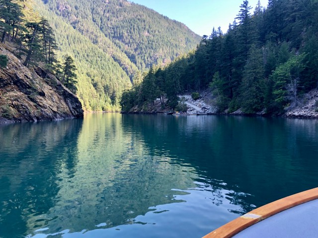 Ferries and barges plied Diablo Lake in the 1930s and 1940s taking materials and laborers upstream to build the Ross Dam. Our ferry followed the same route, although the positions of the docks have changed over the years. We approached the dock to disembark…
