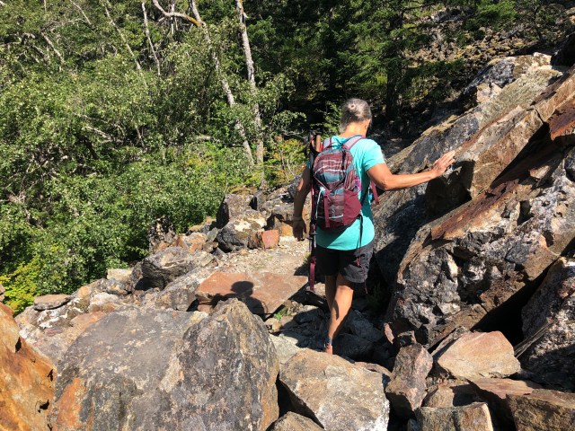 Toward the end of the hike, we came upon a rockslide that had taken out a short section of trail. As we scrambled over the rocks, another couple appeared heading toward us; the only other hikers we had seen.