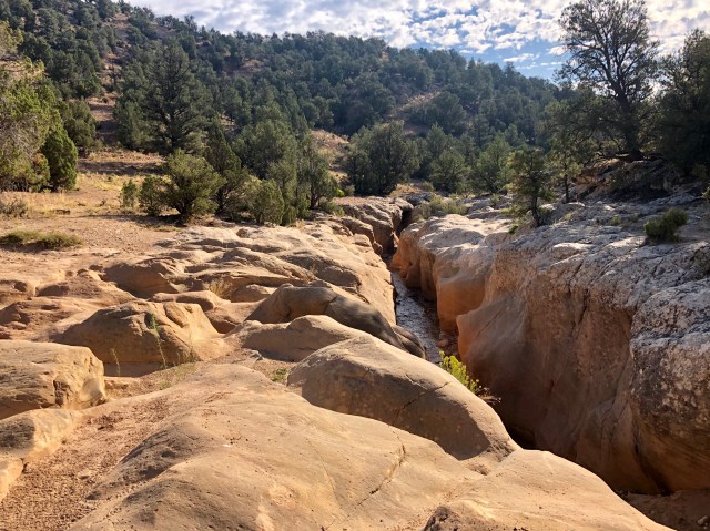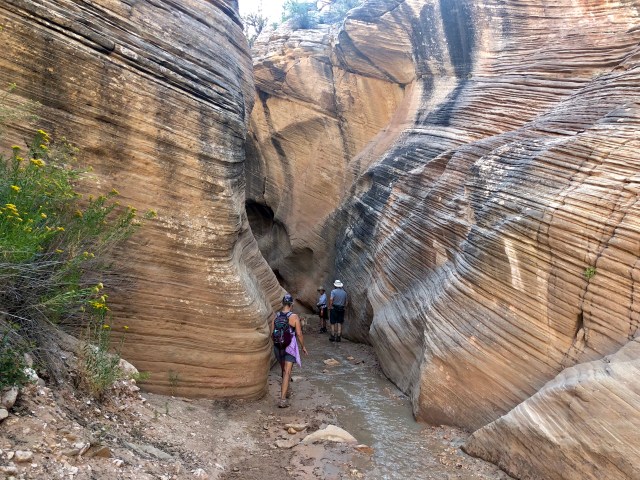 The sandstone strata is really accentuated where the water has run fast and furious through tight slots of harder rock: